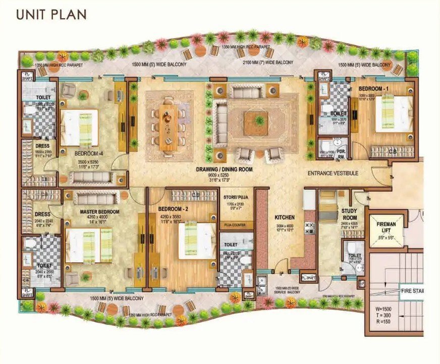 - Balcony Area : 636.69 SQ.FT